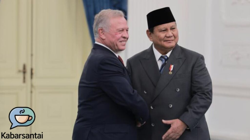 kabarsantai.web.id Presiden Prabowo Subianto menerima kunjungan kenegaraan dari Raja Kerajaan Yordania Hasyimiah, Raja Abdullah II ibn Al Hussein, di Jakarta. Pertemuan yang berlangsung di lingkungan Istana Kepresidenan itu memperlihatkan keakraban kedua pemimpin yang sudah saling mengenal sejak lama. Hubungan personal yang kuat antara keduanya tampak jelas sejak awal kunjungan, yang dibalut suasana hangat dan penuh persahabatan.
