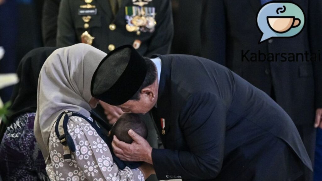 Di tengah prosesi tersebut, sebuah momen sederhana namun sangat menyentuh perhatian banyak orang. Langkah Presiden tiba-tiba terhenti saat berada di depan salah satu peti jenazah. Di sana, terlihat seorang anak kecil yang merupakan keluarga dari prajurit yang gugur.